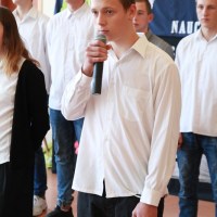 Na widowni zasiadła większa część nauczycieli pracujących w Zespole Placówek im. Jana Pawła II w Lubaczowie. Gościem honorowym była pani naczelnik Wydziału Oświaty w Lubaczowie Marta Zabrońska, która wraz z dyrektorem wręczyła zasłużonym nauczycielom nagrody za szczególne osiągnięcia w pracy dydaktyczno – wychowawczej, a przy okazji dziękowała za wkład pracy i życzyła dalszych sukcesów. Dodatkowo chłopcy rozdali zebranym paniom i panom laurki okolicznościowe oraz babeczki wykonane przez I grupę z internatu z panią Agnieszką Nieckarz oraz Agnieszką Jabłońską. Cała część artystyczna miała na celu podkreślenie, jak ważną osobą w kształtowaniu i wychowaniu młodych ludzi jest nauczyciel, który nie tylko uczy, ale swoją osobowością, inteligencją, oddaniem, poświęceniem może kształtować młodego człowieka w tak trudnych czasach, jakich żyjemy. Młodzież potrzebuje wzorców, a najbliższym im wzorcem jest nauczyciel.
