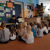 Igor Cieślak oraz Adrian Lew po raz kolejny spotkali się z przedszkolakami przy lekturze, tym razem o Kubusiu Puchatku i jego przyjaciołach.