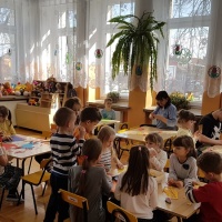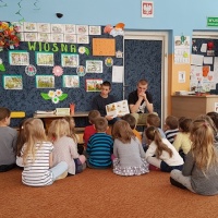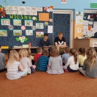 Czytanie bajek o wiosennych pracach w ogrodzie w Miejskim Przedszkolu nr 3 w Lubaczowie