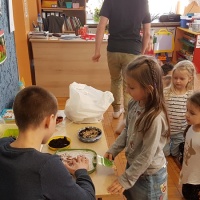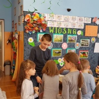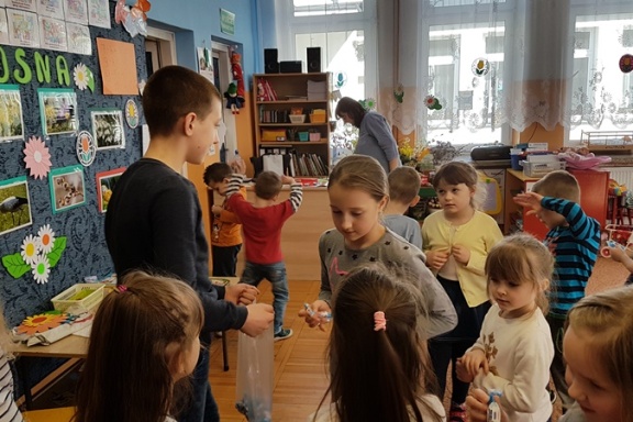Grupa „Smerfów”, z którą się zaprzyjaźniliśmy uwielbia słuchać książek oraz spotkać się z chłopakami z ośrodka. Czas spędzony razem bardzo szybko i przyjemnie płynie. Tym razem czytaliśmy bajkę o przyjściu wiosny do Stumilowego Lasu i związanych z nim pracami w ogrodzie. Kubuś Puchatek to jeden z ulubionych bohaterów dzieciaków i chętnie wsłuchują się w opowiadania o jego przygodach. Oprócz przyjemności czytania zaserwowaliśmy tym razem sianie nasionek rzeżuchy, pomidorków koktajlowych oraz hiacynta. Takie zajęcia sprawiły wszystkim mnóstwo frajdy. Przez wspólną zabawę wszyscy zawsze się czegoś uczymy.