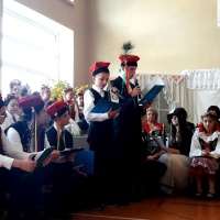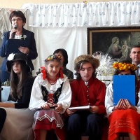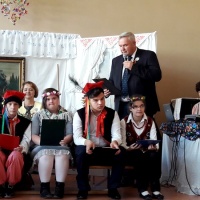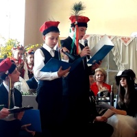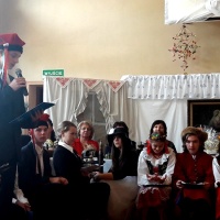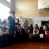 W ramach obchodów tego wydarzenia wychowankowie naszej placówki – oczywiście przy bardzo dużej pomocy nauczycieli i wychowawców – postanowili zorganizować spotkanie ze Stanisławem Wyspiańskim i jego „Weselem”. Cała impreza została zorganizowana w formie – jakżeby inaczej – wiejskiego wesela sprzed 100 lat. Był odpowiednie dekoracje przypominające wnętrze wiejskiej chaty, za stołem siedzieli zaproszeni goście z weselnymi kotylionami. Były też ludowe przyśpiewki w wykonaniu zaproszonego zespołu muzycznego oraz tańce ludowe w wykonaniu zespołu tanecznego pod kierunkiem pani Moniki Jezuit. Oczywiście najważniejszym punktem było głośne czytanie fragmentów „Wesela” – zaangażowali się w to zarówno zaproszeni goście, jak i nauczyciele, wychowawcy oraz przede wszystkim młodzież.