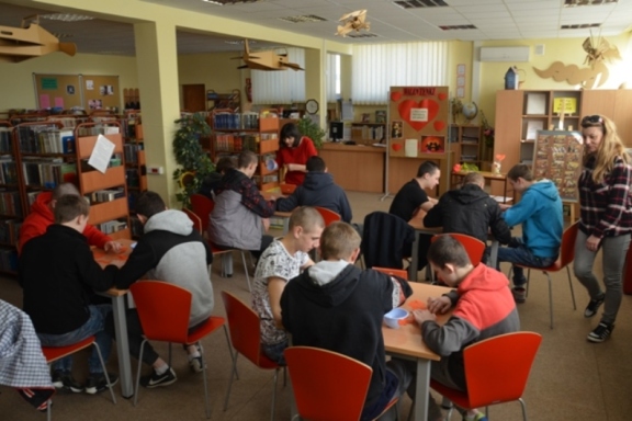 Dnia 19.02.2019 r. w ramach zajęć feryjnych obie grupy wychowawcze pod opieką pani Iwony Pelc - Żurawel i pani Joanny Probola, wzięły udział w warsztacie pt. „Miłość ponad wszystko”. Zajęcia odbyły się w Miejskiej Bibliotece Publicznej - Oddział dla Dzieci. Nasi wychowankowie zostali podzieleni na 4 grupy i w takich składach wzięli udział w różnych konkurencjach, m.in.: pisali kartkę walentynkową do bliskiej osoby, układali walentynkowe puzzle, łączyli połówki serc w jedno serce, wypisywali wyrazy związane z Walentynkami, wypełniali test o święcie zakochanych. Wychowankowie starali się dokładnie wykonać wszystkie zadania, ponieważ grupa, która uzyskała najwięcej punktów, zdobyła nagrodę.