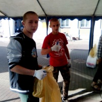 Grupa wolontariuszy w składzie: Daniel M., Mateusz Sz., Kamil R., Michał N., Sebastian Cz., Łukasz P.- uczniowie klasy I i II szkoły branżowej oraz Kacper Sz. – uczeń szkoły podstawowej podczas akcji na Rynku w Lubaczowie mieli okazję wesprzeć organizatorów, czyli Starostwo Powiatowe i Nadleśnictwo w Lubaczowie,
