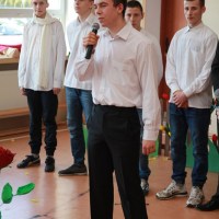 W czasie akademii nie zabrakło również pięknych życzeń dla wszystkich pań przekazanych przez prezentera uroczystości Adriana Lwa oraz pana Andrzeja Wójciaka – dyrektora Zespołu Placówek.