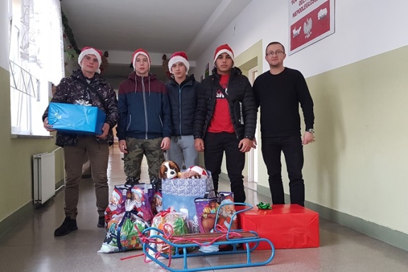 Część otrzymanych tego dnia słodyczy oraz niektóre nagrody wygrane we wcześniejszych turniejach i konkursach (np. sanki, piłki, maskotki) wychowankowie oddali jako mikołajkową paczkę dla wybranej rodziny z Lubaczowa znajdującej się w trudnej sytuacji materialnej.