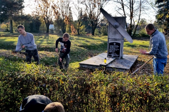 z wychowawcą Maciejem Lewkowiczem oraz grupy V wraz z wychowawcą Grzegorzem Mederem zaangażowali się czynnie do sprzątania grobów nieznanych żołnierzy na cmentarzu na Żelichówce oraz Cmentarzu Komunalnym w Lubaczowie.