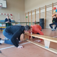 w konkurencjach logicznych (poprawna pisownia liczebników, dopisywanie rymów do podanych wyrazów, tworzenie krzyżówki tematycznej, obliczenia matematyczne) oraz zadaniach zręcznościowo – sportowych (m.in. przelewanie słomką płynu z dużego naczynia do małego, toczenie piłeczki ping – pongowej po ławce, nawlekanie makaronu na nitki, rzuty piłką do kosza czy wyścigi tandemów z użyciem koca).