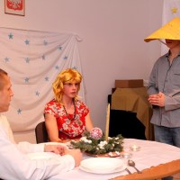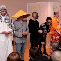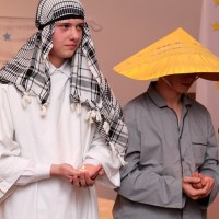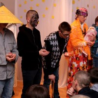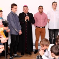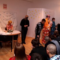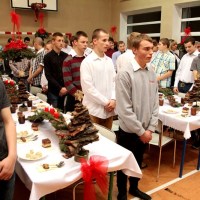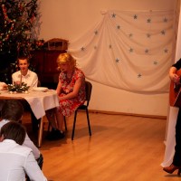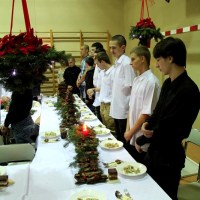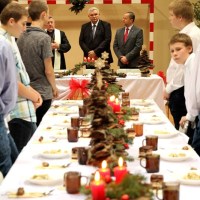 Wieczór ten tradycyjnie rozpoczynają jasełka wystawiane przez uczniów. Tegoroczny spektakl był wyreżyserowany przez panią Agnieszkę Argasińską w oparciu o własny scenariusz. Poruszał bardzo aktualny problem współczesnego świata – zauważenie drugiego człowieka i otwarcie się na jego problemy i potrzeby. Ksiądz biskup, dziękując aktorom za występ podsumował, że była to bardzo potrzebna, pouczająca i poruszająca sumienia lekcja życia. Jego ciepłe, pełne uznania słowa nie były jedyną niespodzianką tego wieczoru. Kiedy wszyscy zebrali się przy nakrytych do kolacji stołach w pięknie udekorowanej sali gimnastycznej, biskup Leszczyński zagrał kilka kolęd na organkach ustnych, a zebrani ochoczo włączyli się do śpiewania. Wprowadzeni w odświętny nastrój, po wspólnej modlitwie, dzielili się opłatkiem i życzyli wszystkiego, co najlepsze. A tradycyjne, świąteczne potrawy smakowały prawie jak w domu.